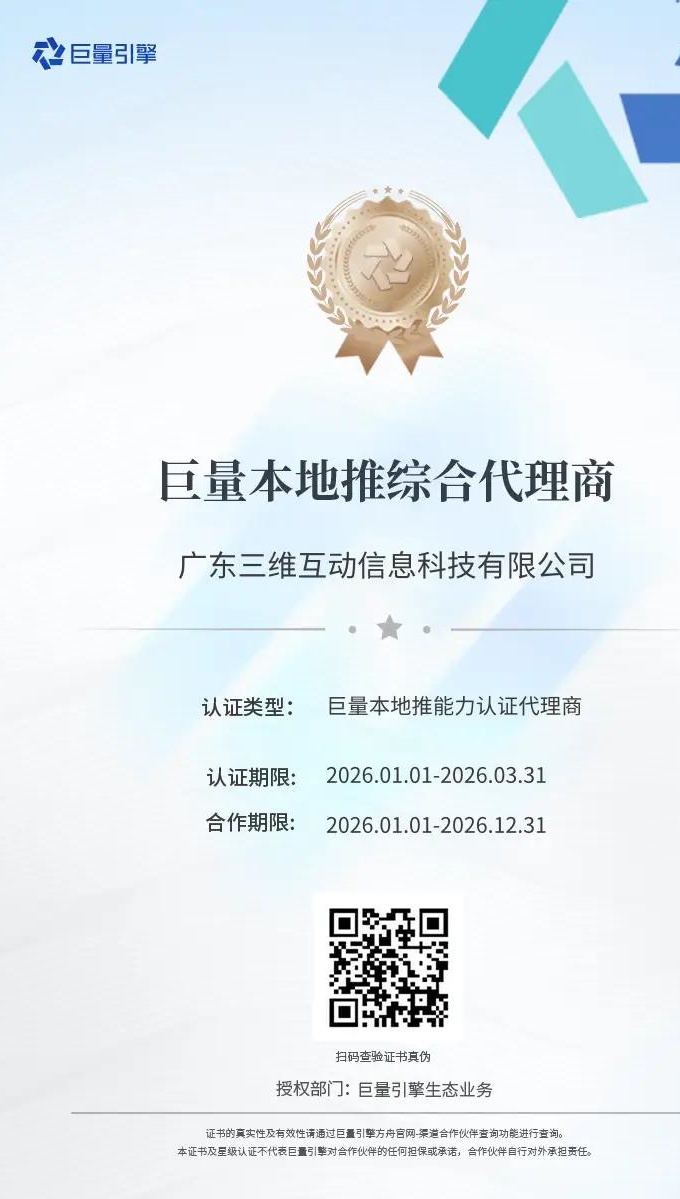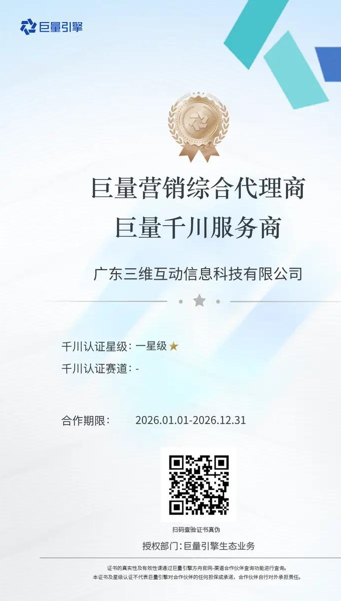 巨量營銷綜合代理商證書合作時間:2026.1.1~2026.12.31